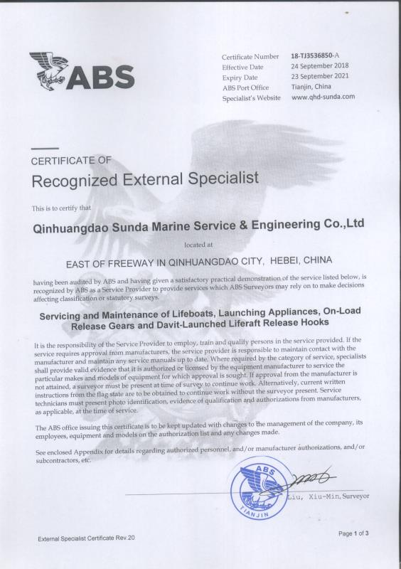 秦皇島順達船務(wù)有限公司位于美麗的海濱城市、中國北方著名的能源輸出大港--秦皇島。公司從事于船舶修理、物料供應(yīng)、水下檢測、船體測厚、消防救生設(shè)備及救生艇檢驗、電氣自動化修理等服務(wù)。 公司自1997年成立至今,先后為國內(nèi)外船東修理、檢驗各類船舶萬余艘,積累了豐富的施工經(jīng)驗。公司現(xiàn)有場地100余畝,員工30余人,以及工程用車若干臺。我們公司一直本著嚴以律己、真誠待人、精益求精、信譽至上的經(jīng)營理念,以優(yōu)質(zhì)的服務(wù)、專業(yè)的施工、合理的收費,得到了國內(nèi)外船東的廣泛認可,贏得了良好的口碑和信譽。 公司已取得了中國船級社(CCS)、美國船級社(ABS)、日本船級社(NK)、德國船級社(DNV GL)等各個船級社的消防救生和救生艇檢驗資質(zhì), ...